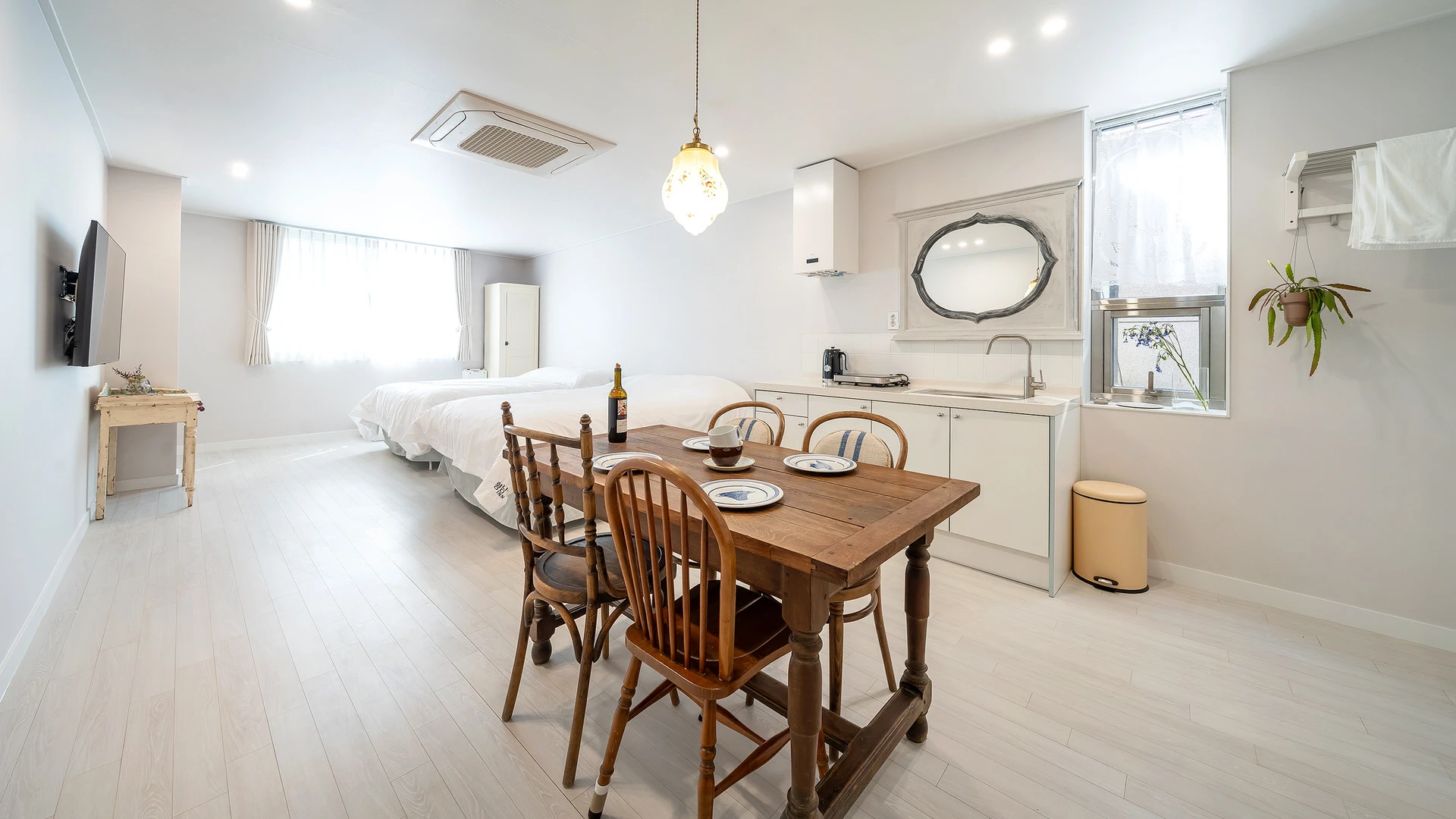 - 집기품목 : TV, 냉장고, 전자레인지, 커피포트, 취사시설/도구, 인덕션, OTT, 무선인터넷, 드라이기, 샴푸, 바디워시, 린스, 타월